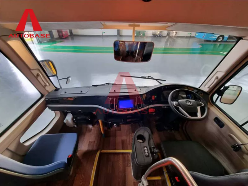 7,2 m Pure Electric Bus, zasnovan za zmogljivost in zanesljivost, je opremljen s prefinjenim sistemom sprednjega in zadnjega zračnega vzmetenja. To zagotavlja izjemno gladko in stabilno vožnjo po različnih urbanih terenih. Ponaša se z impresivnimi zmogljivostmi, vključno z največjim naklonom vzpona 25 % za enostavno obvladovanje naklonov in najvišjo hitrostjo 80 km/h, zaradi česar je idealen za učinkovito mestno in primestno kroženje. Notranjost je premišljeno konfigurirana za optimizacijo udobja potnikov in operativne učinkovitosti. Odlikuje ga praktična razporeditev sedežev 2+1, kar doseže vrhunec s kapaciteto sedežev 22 potnikov in 1 voznika. Ta postavitev maksimira prostorsko uporabnost, zagotavlja udobno sedenje in omogoča nemoten pretok potnikov. Kabina je zasnovana z nizkim vstopom, kar izboljšuje dostopnost za vse potnike, vključno s starejšimi in osebami z gibalnimi težavami.